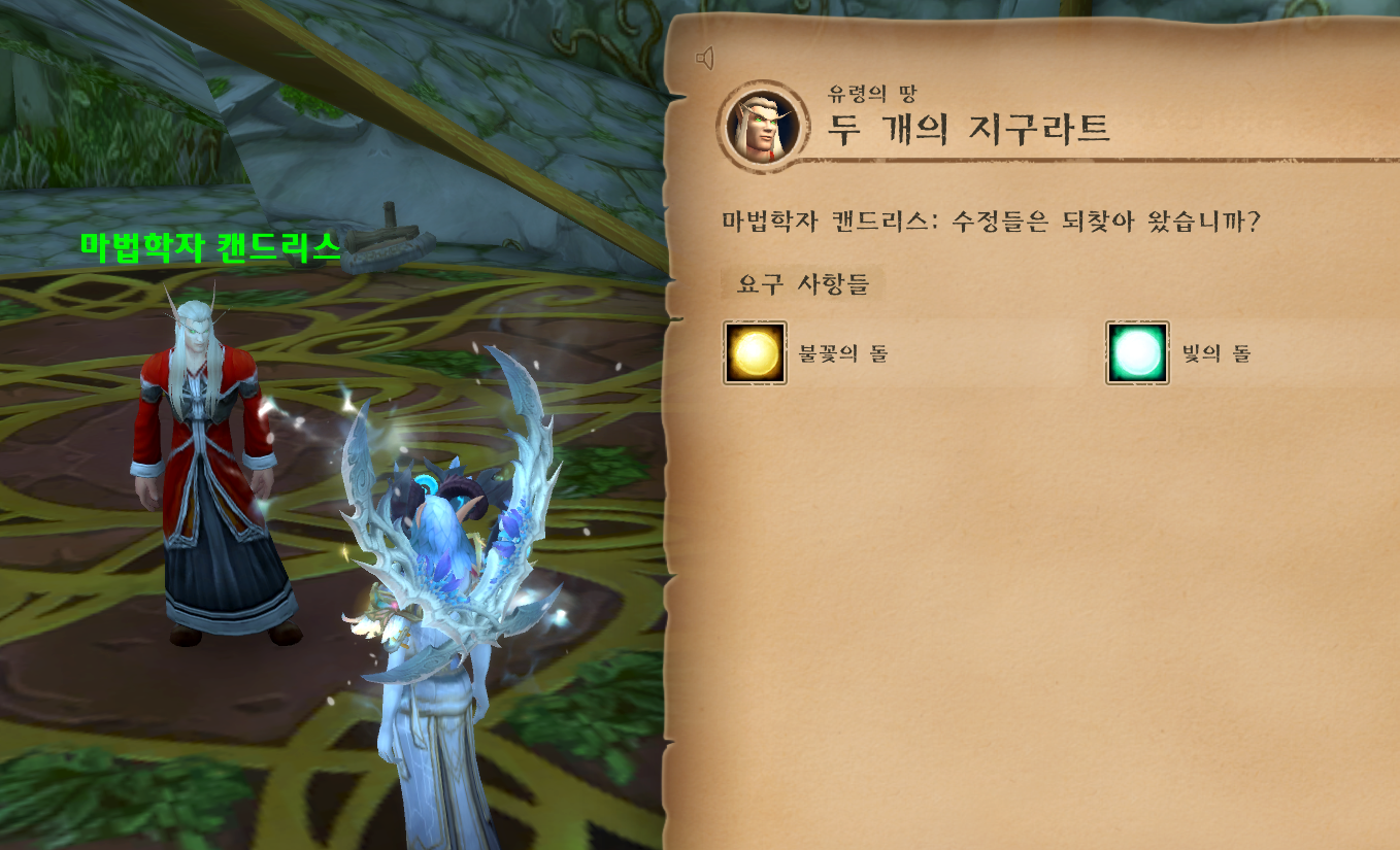 달의 수정이란걸 설치해 블러드엘프들의 동태를 감시하려는걸 막아달라한다. 달의 수정 소뷰티풀.. 이것도 하우징 아이템으로 넣어주면 좋겠다.
